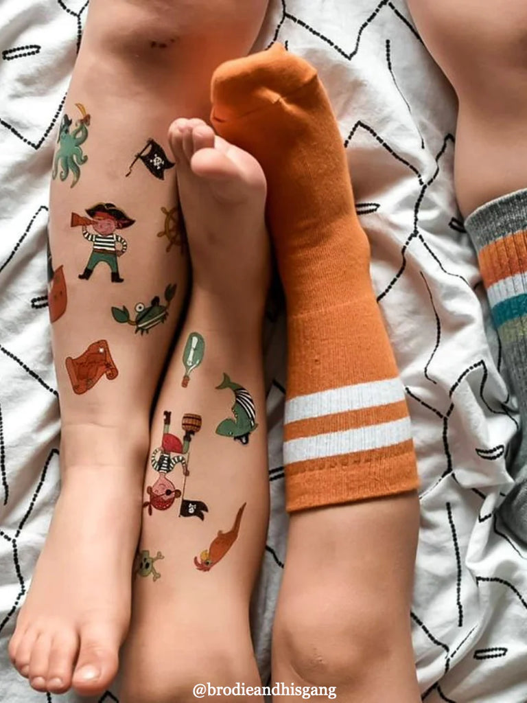 Ahoy, mateys! Let your little one's sail away on an adventure with this set of temporary pirate tattoos! With a variety of designs to choose from, they can pick their favorite to show off their swashbuckling style. Whether they're pretending to be a captain of the high seas or exploring a mysterious island, these tattoos will make their imaginations run wild!