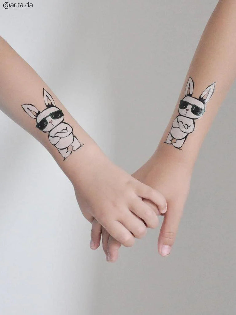 These cool temporary tattoos feature a rad white rabbit wearing some stylish sunshades! Perfect for kids who want to show off their style and have a bit of fun!