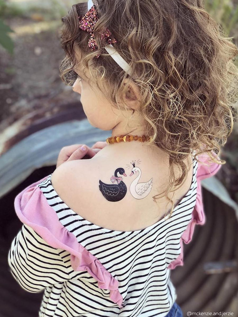These temporary tattoos of black and white swans are inspired by the classic ballet Swan Lake. So, put on your tutu and get ready to swan around the room with these beautiful swan tattoos!