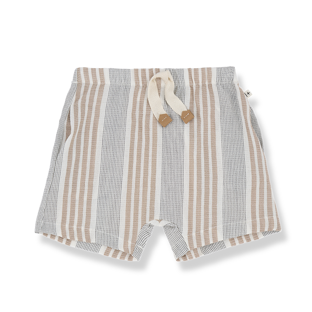Light striped gauze bermuda shorts with cotton twill tape on waist. on twill tape on waist.
