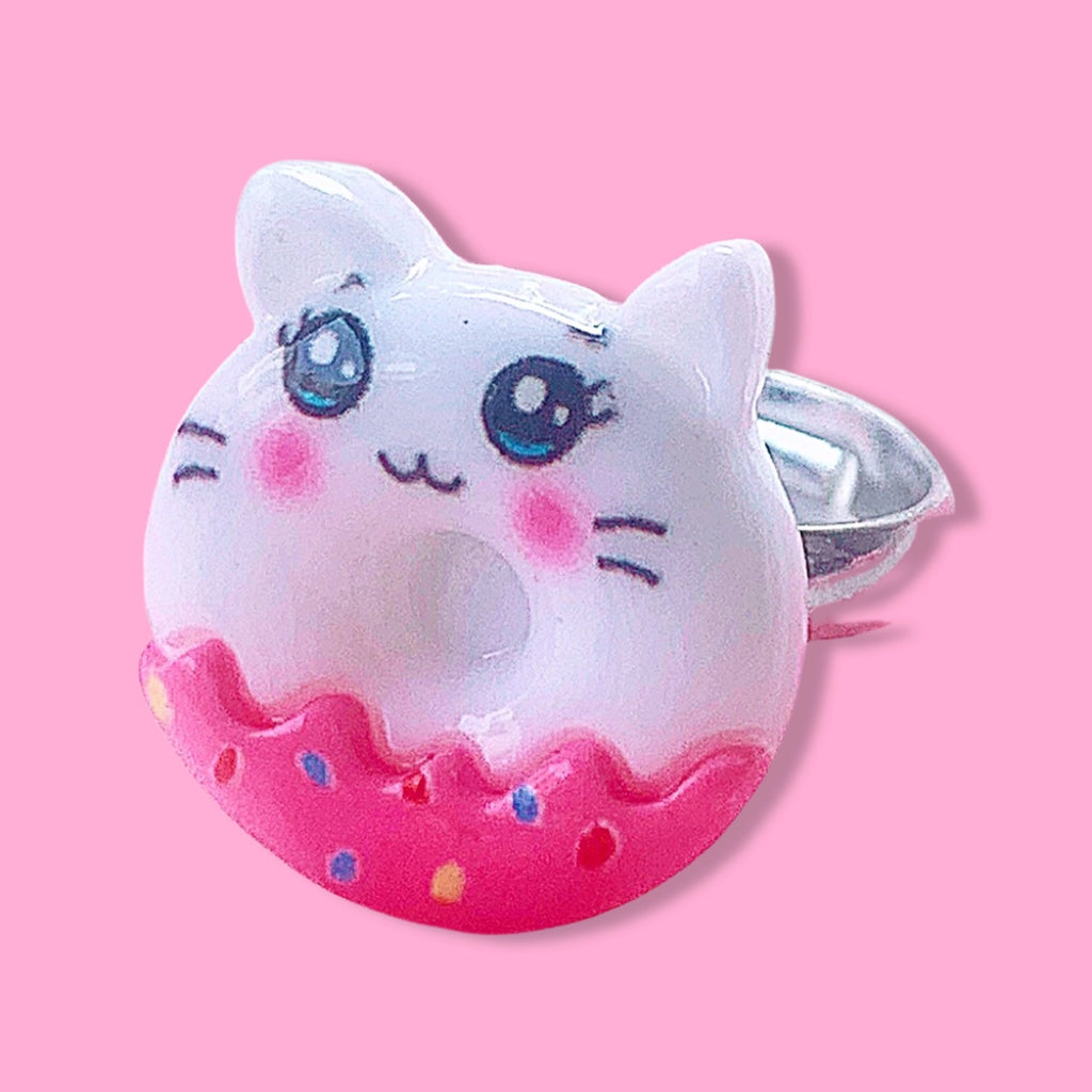 Cute little smiling animal donuts on an nickel-free adjustable ring.