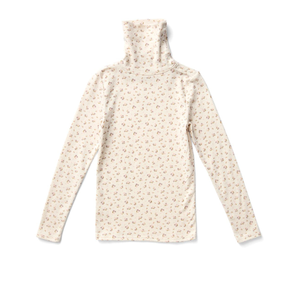 L/S Snap Turtleneck Calico Print Pointelle, Rosewood