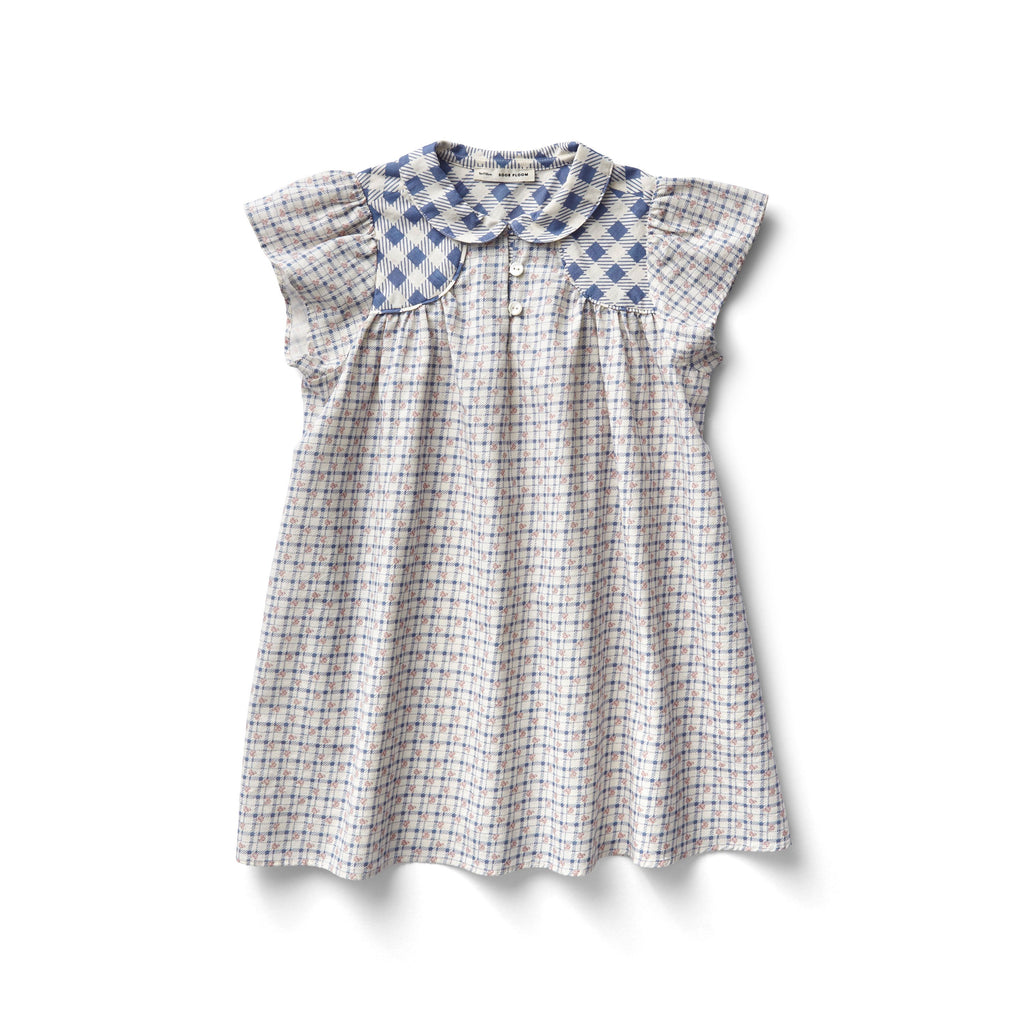 Philomena Dress in Checker Rose Print - Blueberry