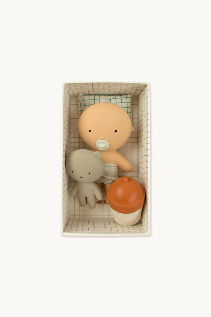 Gommu family is getting bigger or maybe should we say smaller? Find Baby Gommu in POCKET size! Baby Gommu Coco comes with its best friend bear, a bottle of milk and a cushioned pillow for nap time. All these toys in one carboard bed for long hours of play!