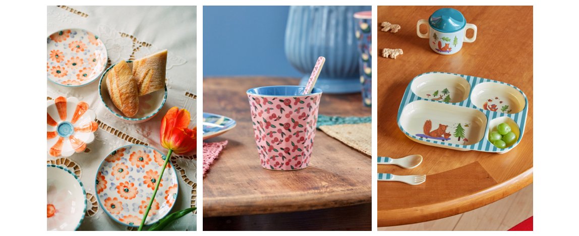 RICE is a Danish homeware and accessories company known for colorful melamine, handmade baskets, storage, and hand glazed tableware. RICE is all about fun, funkiness and functionality, but we do work with our hearts as well. At RICE we make sure that we follow international standards regarding corporate social responsibility.