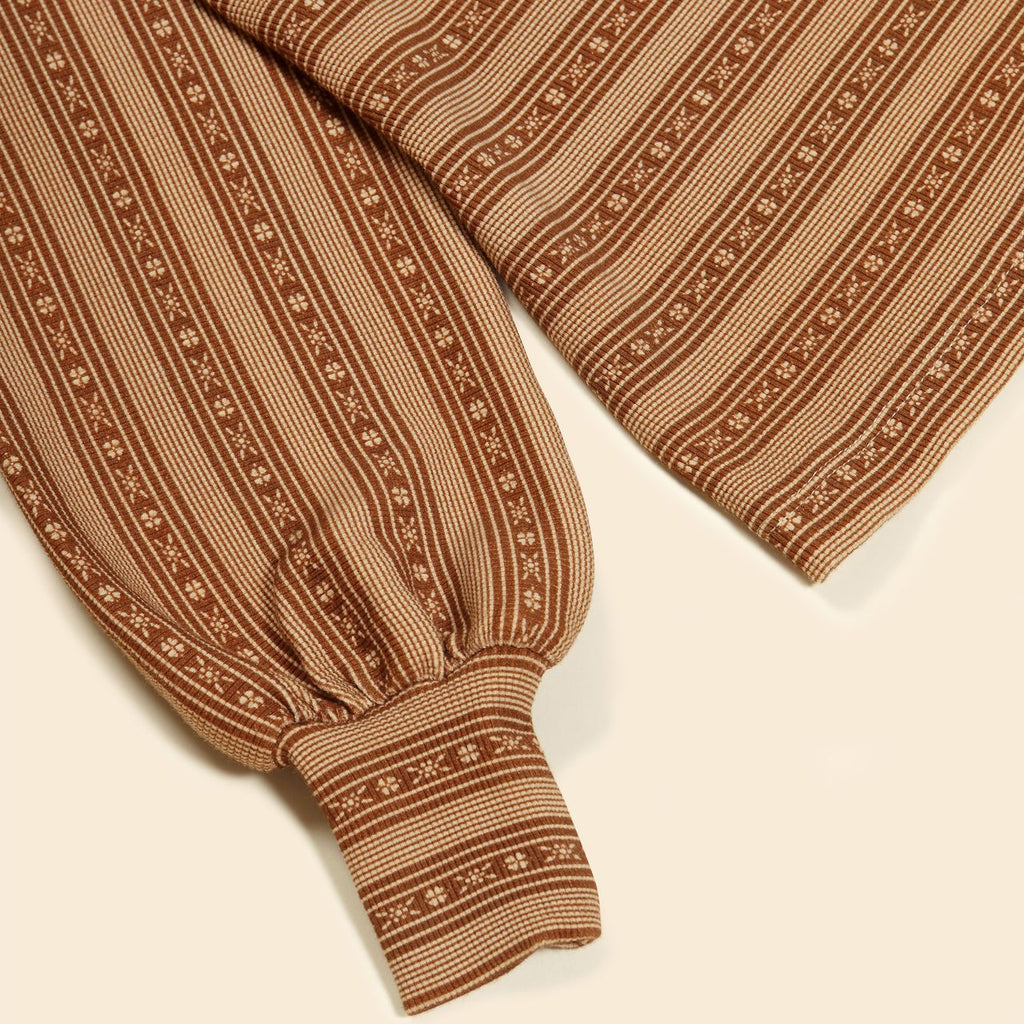 Roberta Jersey LS top-Kanna Stripe. A vintage-inspired long sleeve top in our soft jersey, Roberta comes in the season’s ‘Kanna stripe’. Designed with voluminous sleeves and a relaxed fit, we love Roberta layered over dresses or under pinafores, or mixed and matched with our jersey bottoms.