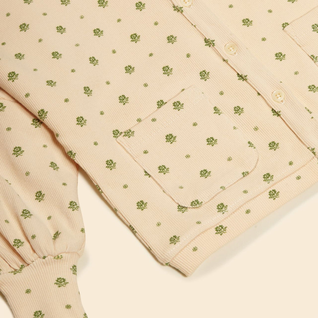 Our Simona cardigan features voluminous sleeves with Apolina’s signature vintage mood. Featuring our pretty ‘meadow calico’ print on the softest ribbed jersey, Simona is an easy, everyday extra layer. Style her over dresses or mix and match with our Lana leggings.