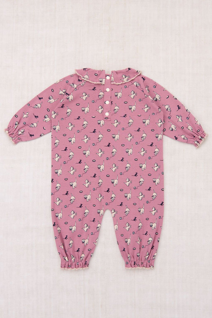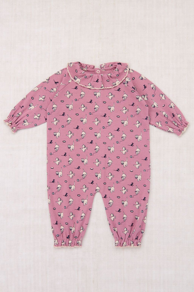 Baby Pierrot Onesie in Antique Rose Cat & Mouse