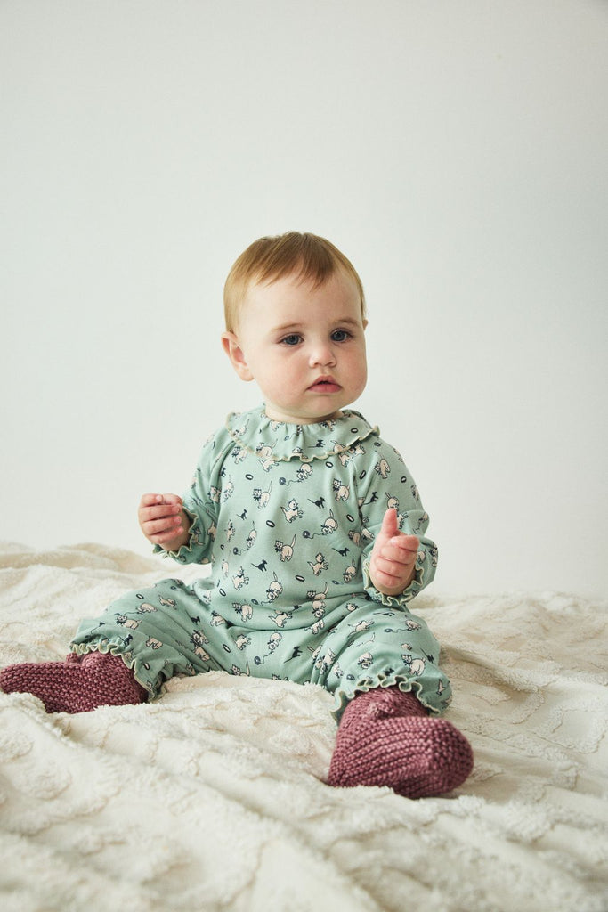 Baby Pierrot Onesie in Sage Cat & Mouse