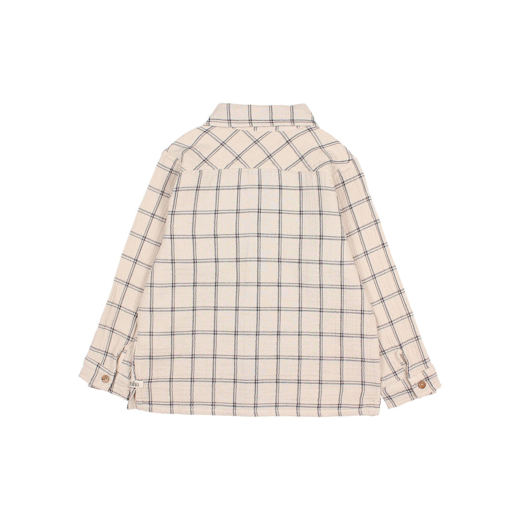 Mountain check double fabric shirt. Shirt collar. Fastened with buttons on the front. Has front pocket.