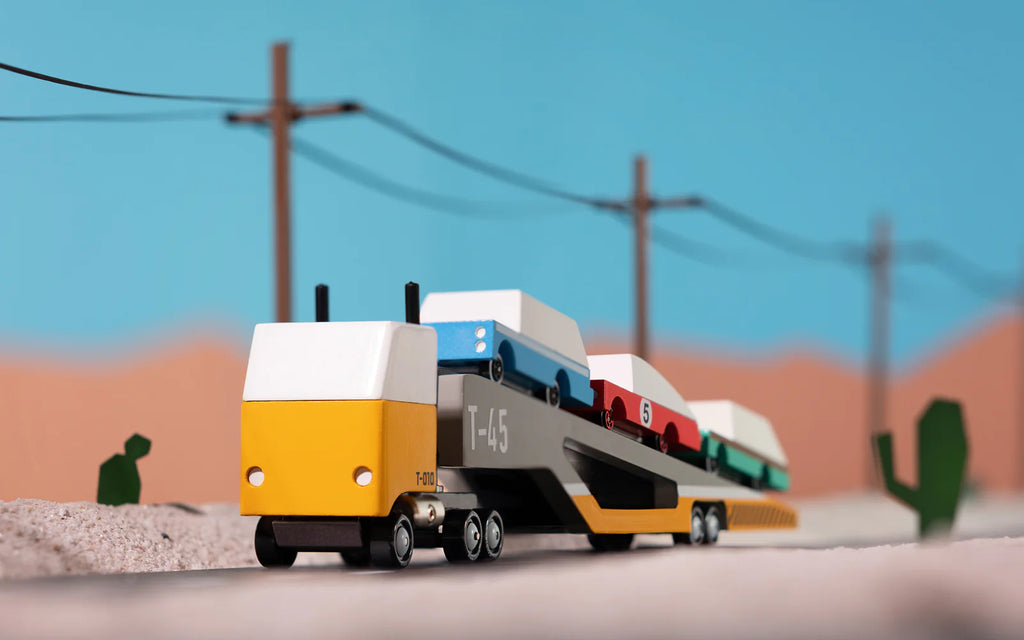 How's my driving? An open trailer with room for one CANDYCAR® makes the Overnighters Semi a truck-ton of fun!