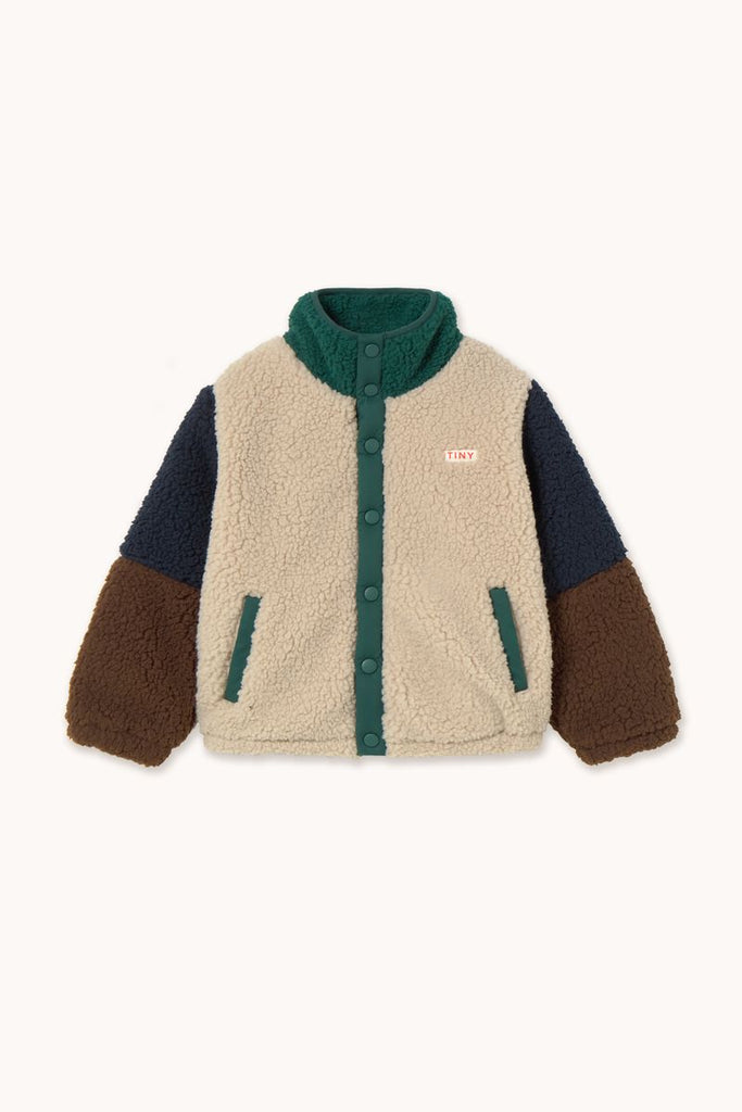 Color Block Polar Sherpa Jacket in Dark Green/Beige