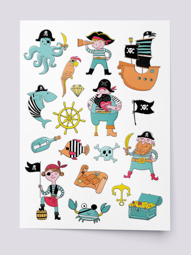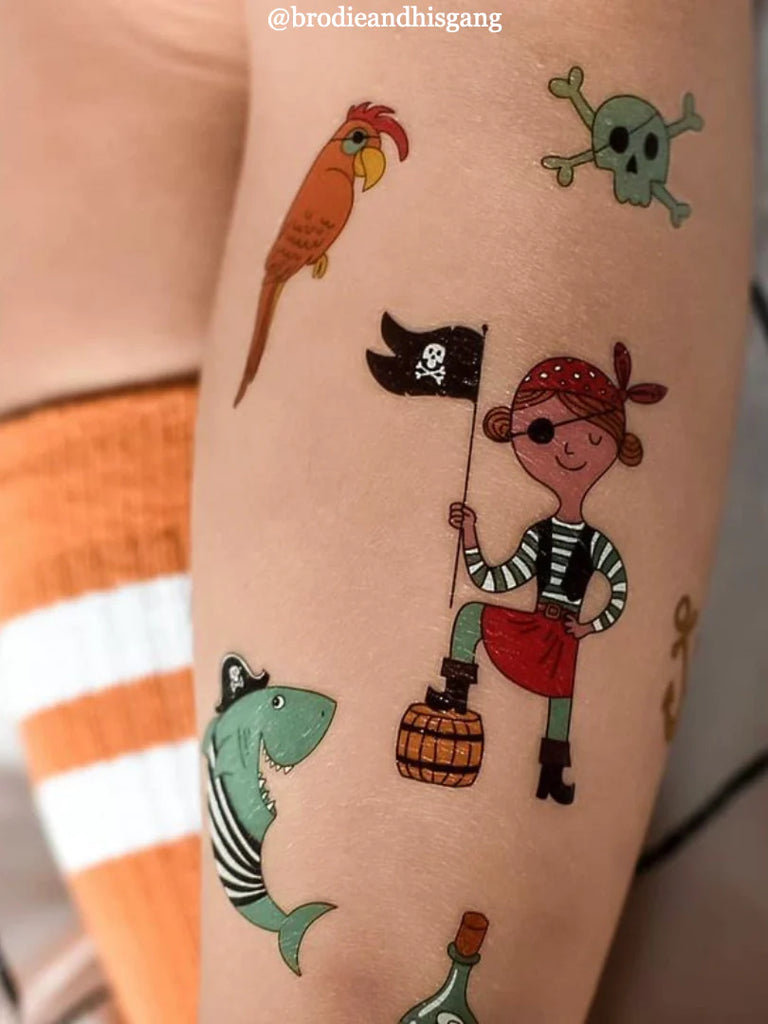 Ahoy, mateys! Let your little one's sail away on an adventure with this set of temporary pirate tattoos! With a variety of designs to choose from, they can pick their favorite to show off their swashbuckling style. Whether they're pretending to be a captain of the high seas or exploring a mysterious island, these tattoos will make their imaginations run wild!