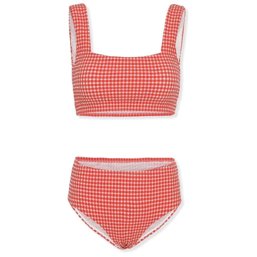 Bikini made in a soft seersucker effect. The top features a square neckline and a built-in bra with an elastic band at the base to support the breasts. The stretchy fabric protects against the sun’s UV rays with the highest ultraviolet protection factor, UPF 50+.