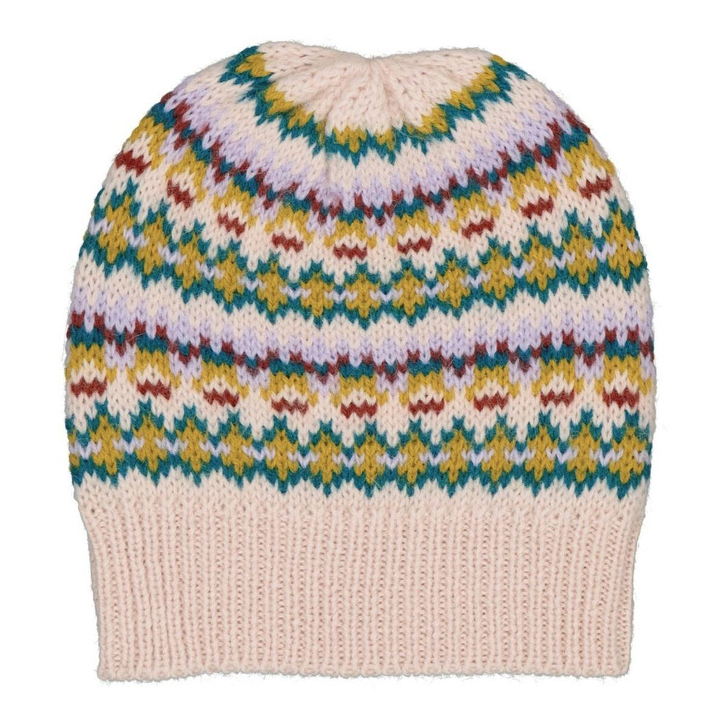 Knitted Jacquart hat in a multicolor diamond-shaped design.