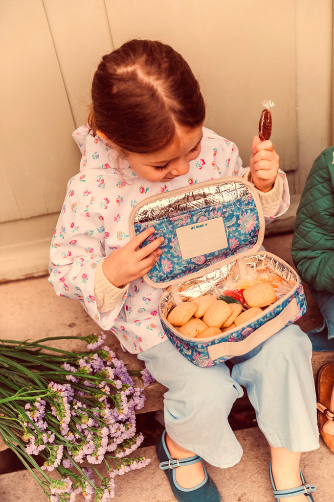 accZippered lunch box in recycled polyester, coated on the back with inside patch pocket. isotherm lining