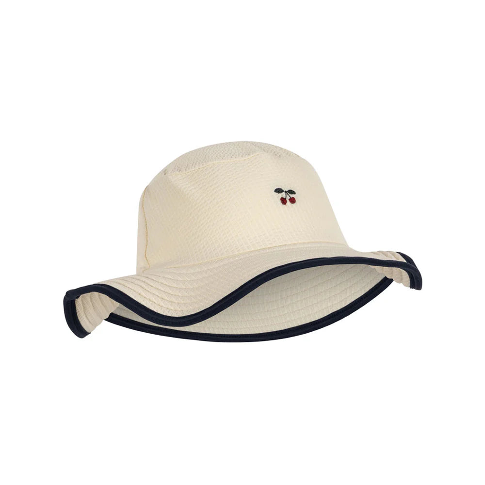 Bucket hat with a wide brim for sun protection. Features an elasticated brim for reliable sun protection and a comfortable fit.