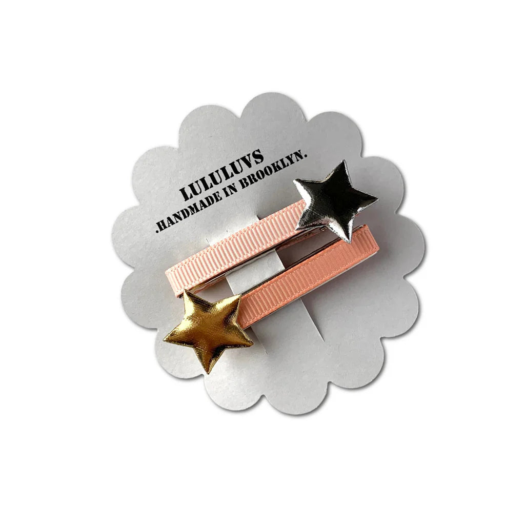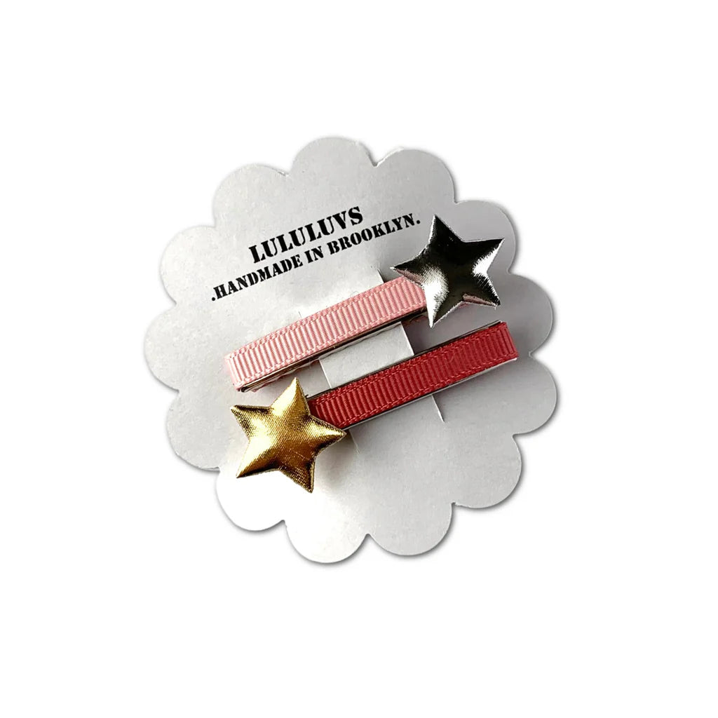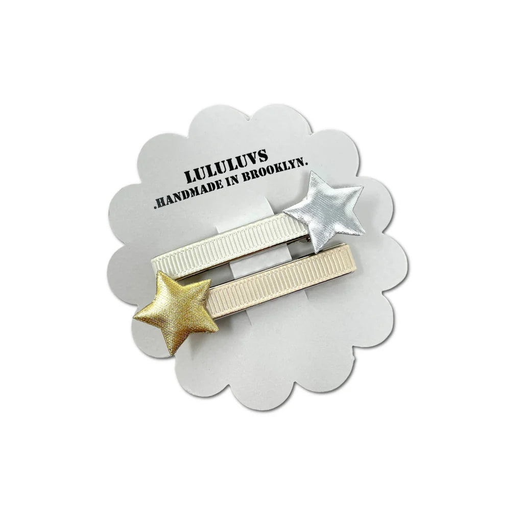 Measurements: 2” long x 0.25” wide, 0.75” metallic puffy star.