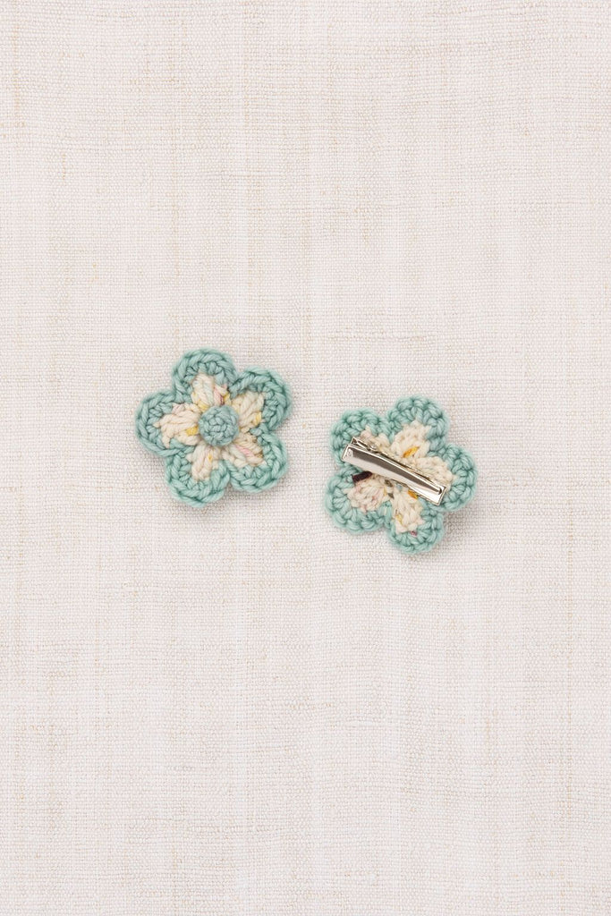 A hand-crocheted flower clip set in Merino wool, mounted on alligator clips. A little pop of embellishment for any look. The hand-dyeing process of our yarn introduces beautiful variations and subtle nuances, making each garment truly unique.