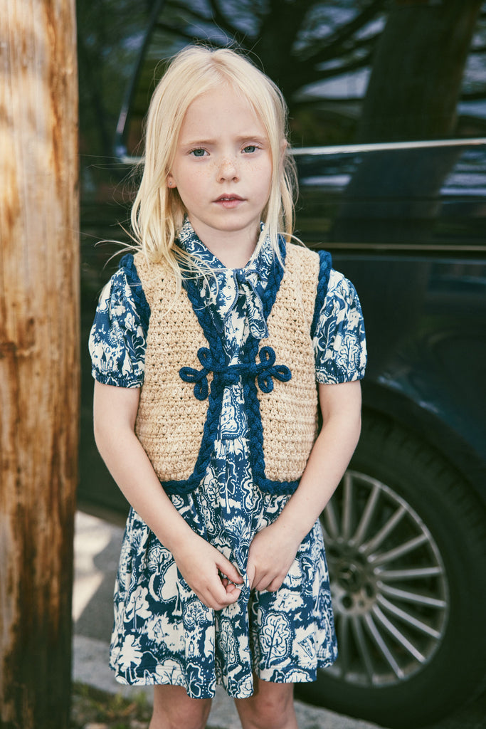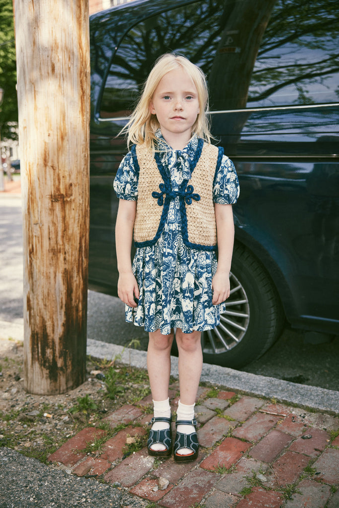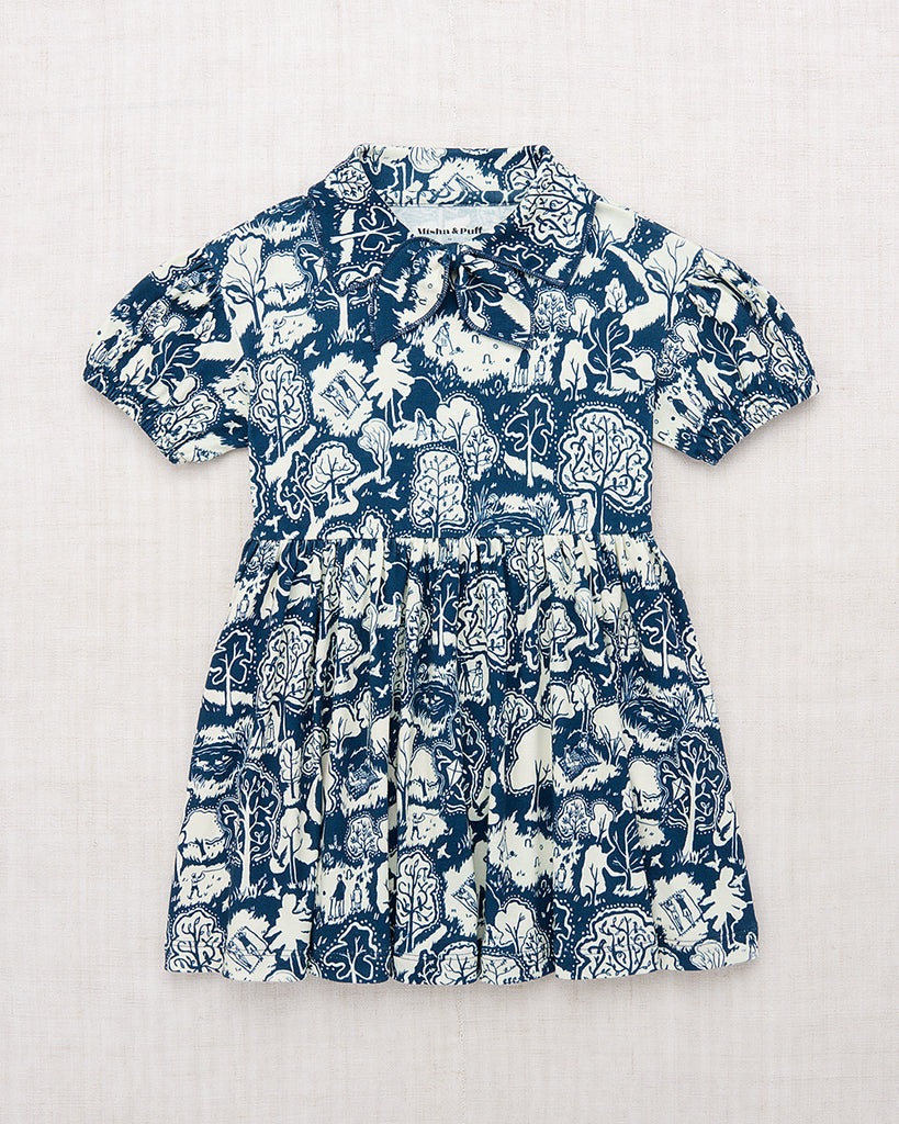 Inspired by Misha & Puff’s signature Scout Top, a short-sleeved peplum-style dress in Pima cotton. Featuring puff sleeves with soft elasticated cuffs and the Scout pull-through kerchief with additional soft pointed collar