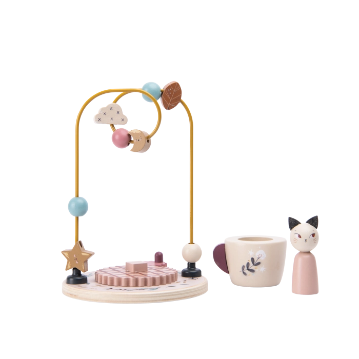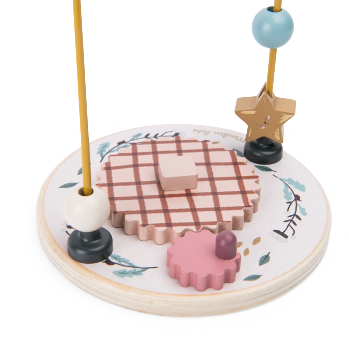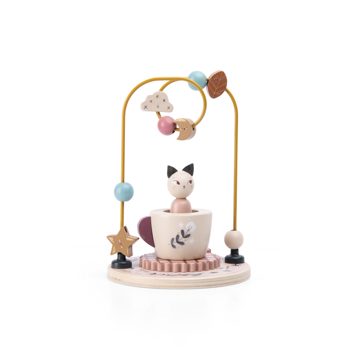 Discover the whimsical fun of the Wooden Bead Maze - After the Rain by Moulin Roty from the After the Rain collection by Moulin Roty. This beautifully illustrated manipulative game is designed to engage and delight little ones as they explore the world of gears and beads. Watch the cup spin and interact with its charming character, while the bead circuit provides endless opportunities for imaginative play.