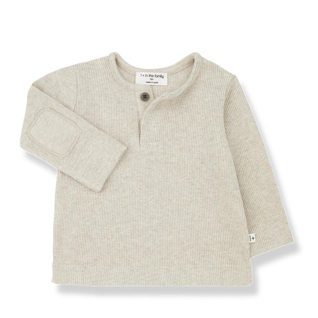 Rib jersey Henley T-Shirt with patch detail on elbows.