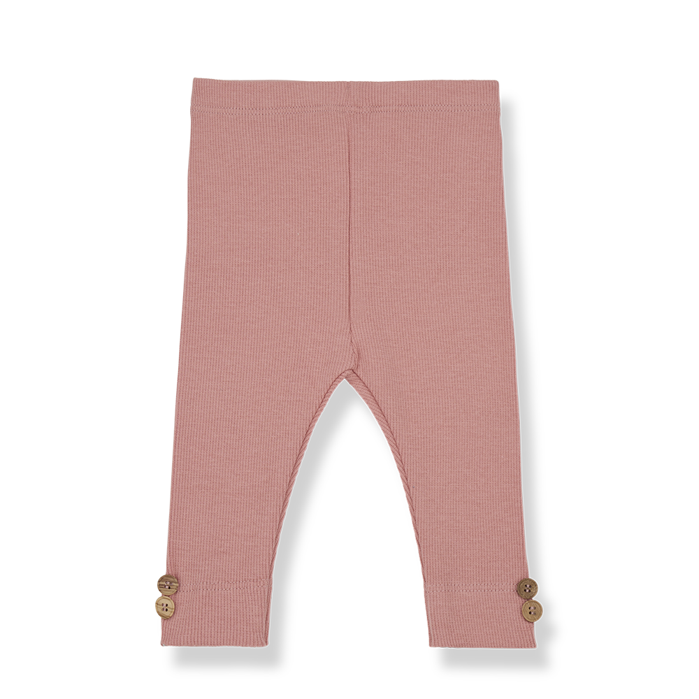 Rib leggings with elastic waistband and decorative buttons on ankles.
