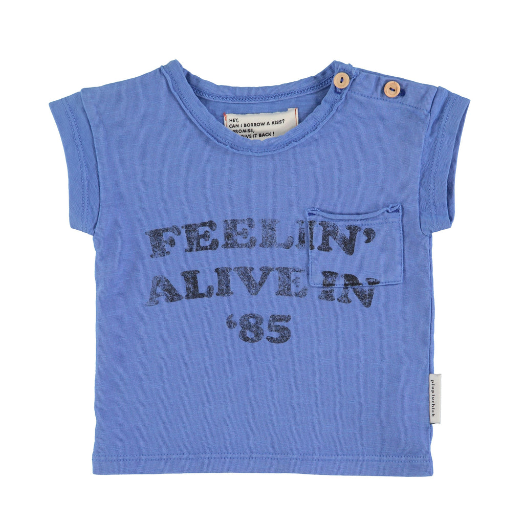 T-Shirt in Blue w/ "Feelin Alive" Print