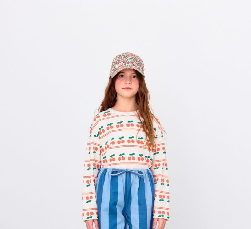 Crafted from a soft cotton blend, this cherry print rib tee effortlessly combines comfort and style. Its bold design adds a subtle playfulness to everyday wear. With long sleeves and a round neckline for a relaxed fit, the breathable fabric is gentle on your child’s skin. Perfect for casual outings or cozy days at home, this tee balances style and comfort with a clear focus on quality.