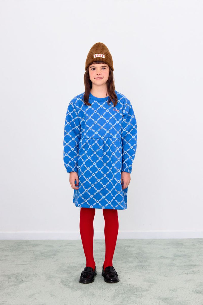 This elegant dress features our original Flower Grid print on soft, 100% organic cotton with a breathable feel. Designed with a relaxed silhouette, it offers comfort and ease with a rounded neckline and elasticated cuffs for a gentle fit. Perfect for everyday wear or special occasions, this kids’ dress combines style with sustainable materials.