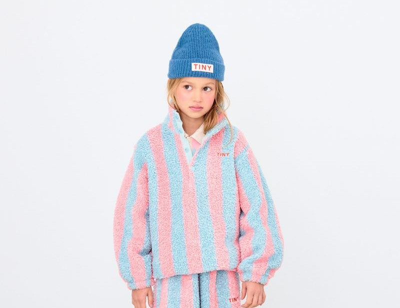 Stripes Sherpa Sweatshirt in Warm Grey/Pink